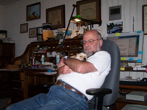 When Wilbur came along, I was already showing Tulley, so I had Leslie Racine and Chris Racine show Wilbur. He played in the puppy conformation classes, but decided he'd rather be home with Ken. Wilbur became Ken's buddy and walking partner.
